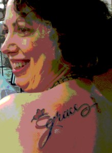 So that brings me to Grace. You’ll notice my blog name: The Far Reaches of Grace, I also have a tattoo that says “grace”.