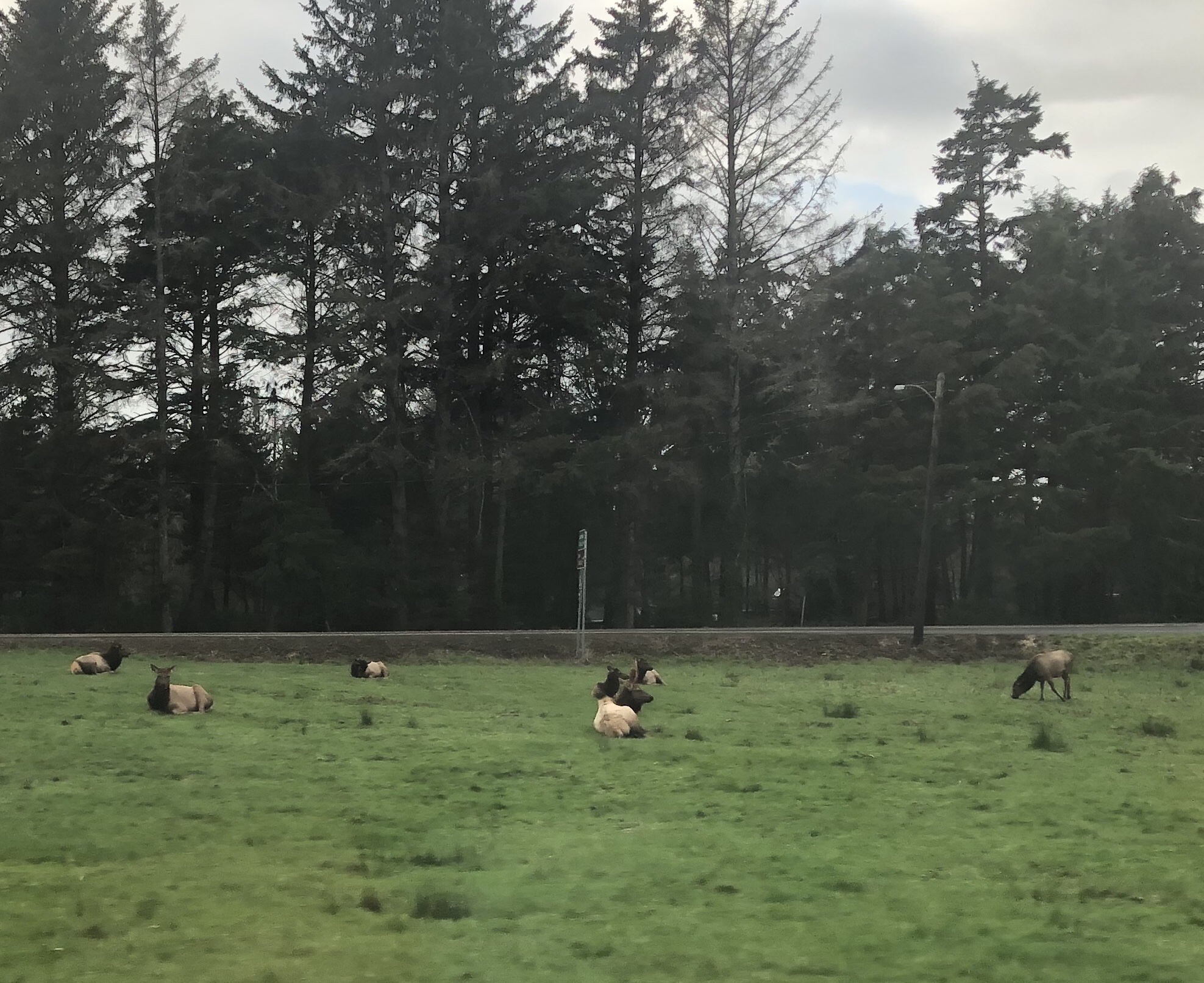 And elk resting in a field.